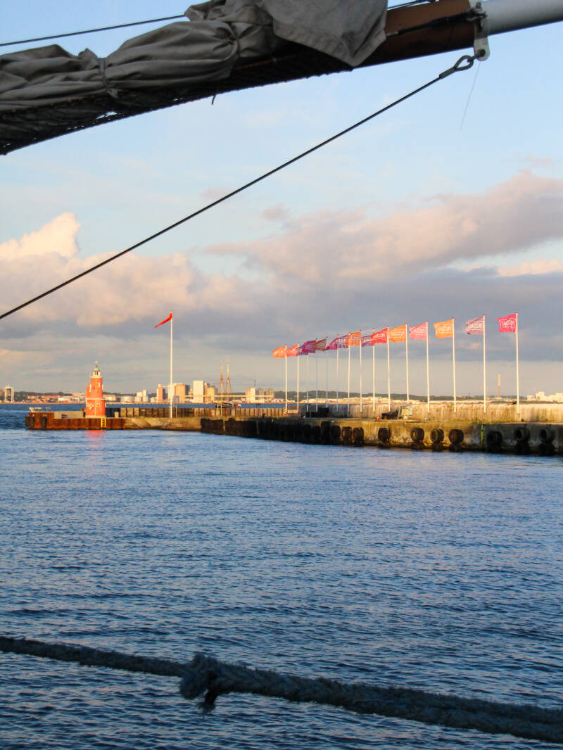 Ik besloot dat ik een mooie dag had gehad, en het tijd was om terug te gaan naar het schip, zodat ik de laatste dingen in de keuken kon gaan doen. Echter kreeg ik bij aankomst van het schip nog een prachtig cadeautje. Er bleek prachtig licht te zijn en net een heel mooi zeilschip de haven in te varen. Samen met mijn camera genoot ik nog even door, terwijl ik de boeg van de Atlantis als doorkijkje te gebruiken om foto's van de haven en het andere zeilschip te maken. Als fotografie liefhebber, voelde dat als nog een extra cadeautje van het universum.